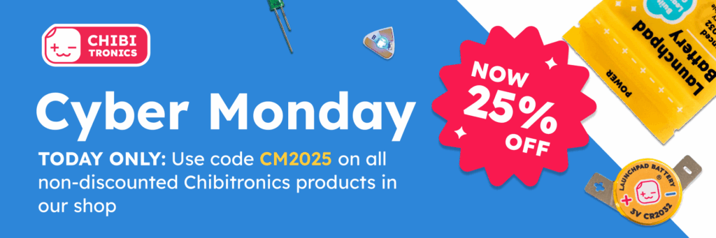 Code valid: December 1, 2025 @12:01am PT – December 1, 2025 @11:59pm PT on non-discounted Chibitronics items in our shop. No minimum purchase required. Offer may not be combined with other discounts.