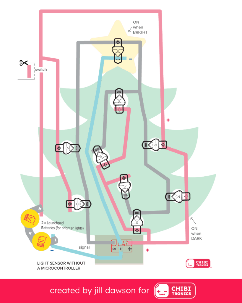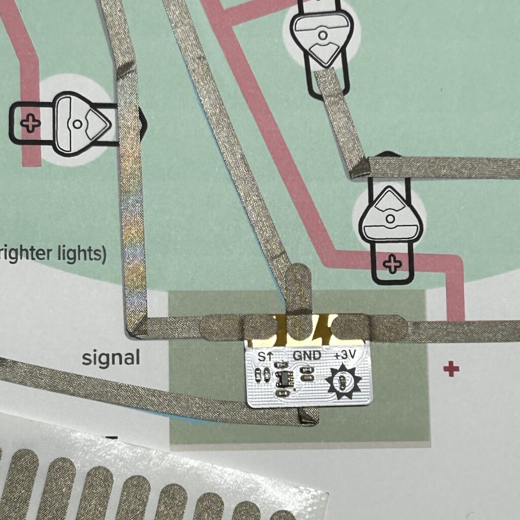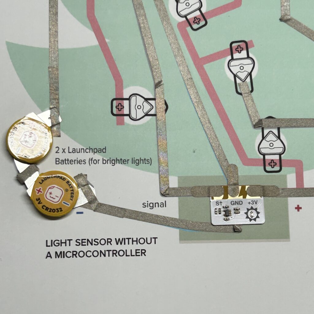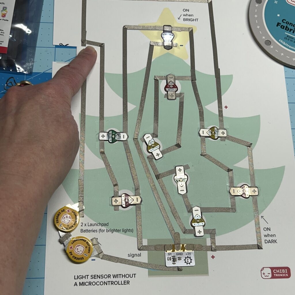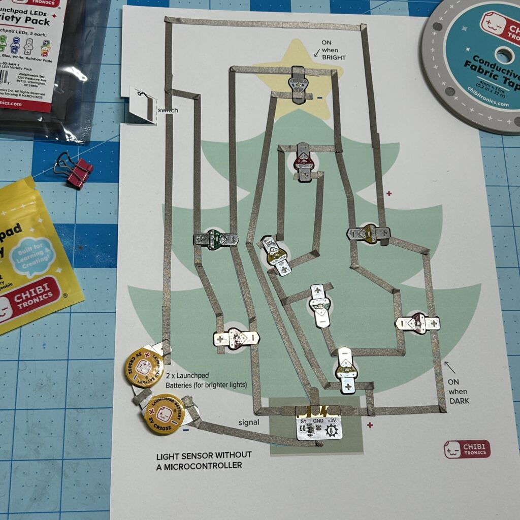 In this post, I’ll show you how to use a Light Sensor Sticker to make a light-sensing tree with Chibitronics Launchpad LEDs. We’ll add a bit of light-reactive magic — without coding!