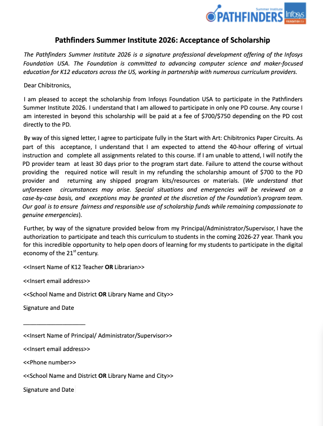 Chibitronics is excited to be partnering with Infosys Foundation USA again this summer to offer public school teachers and public librarians in the United States FREE professional development for the Summer Pathfinders 2026 workshops!