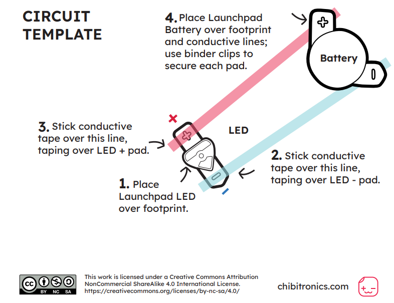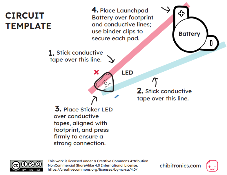 We only require that you attribute Chibitronics, and that any derivative works (such as translations and lesson plans) also use the same CC BY-NC-SA-4.0 license. Please click the CC icon below for more details on the license.