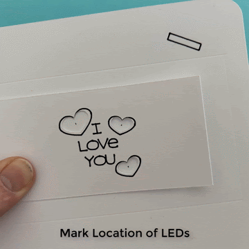 If you chose to design your own circuit, use a pencil to mark the locations for your LEDs and avoid placing LEDs in the center of the Card Back (denoted with an embossed circle). LEDs placed in the center will interfere with the metal brads you’ll be placing in another step.