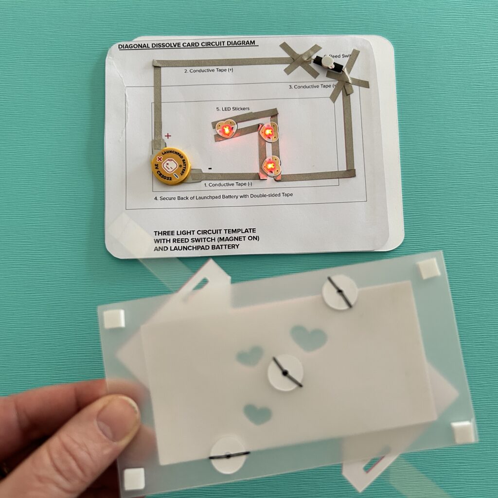 If you build your circuit onto the template, you’ll need to cut it out and use double-sided tape to adhere it on top of the Card Back.