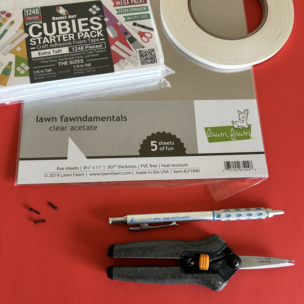 - 1 piece of firm acetate (such as this) large enough to cut into a ⅜” W X 8” H strip