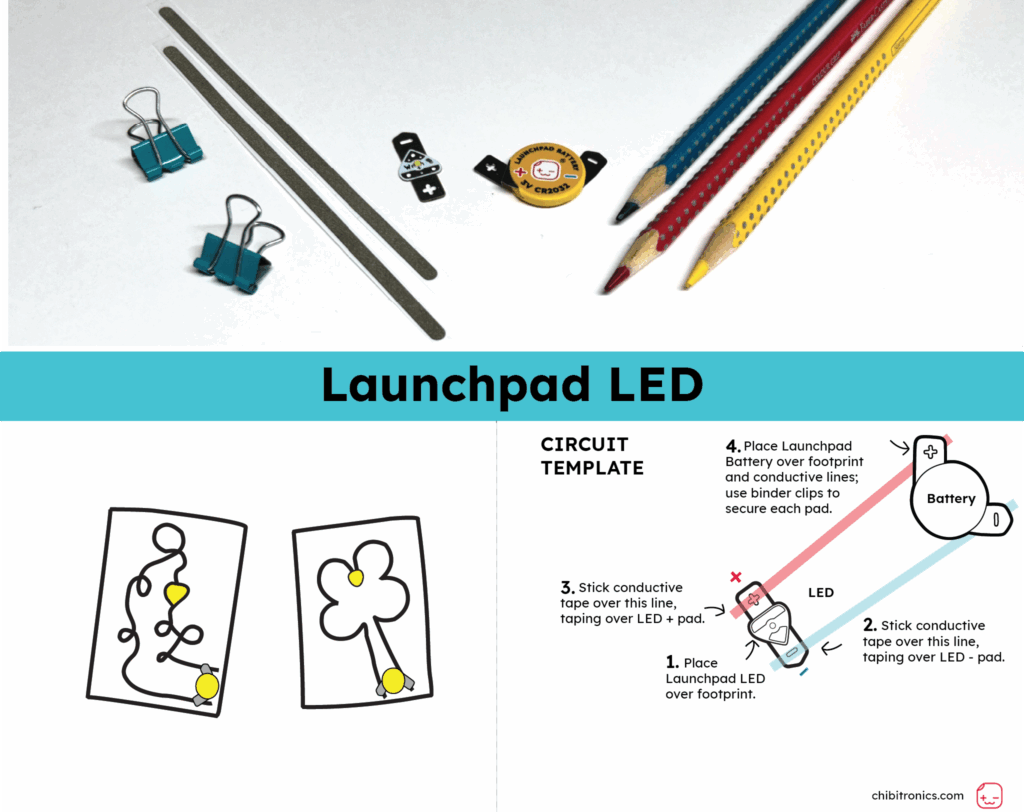 Tip: All of the materials, except for the printable template, are included in the Start with STEAM: Launchpad LED Kit (Level 1)!